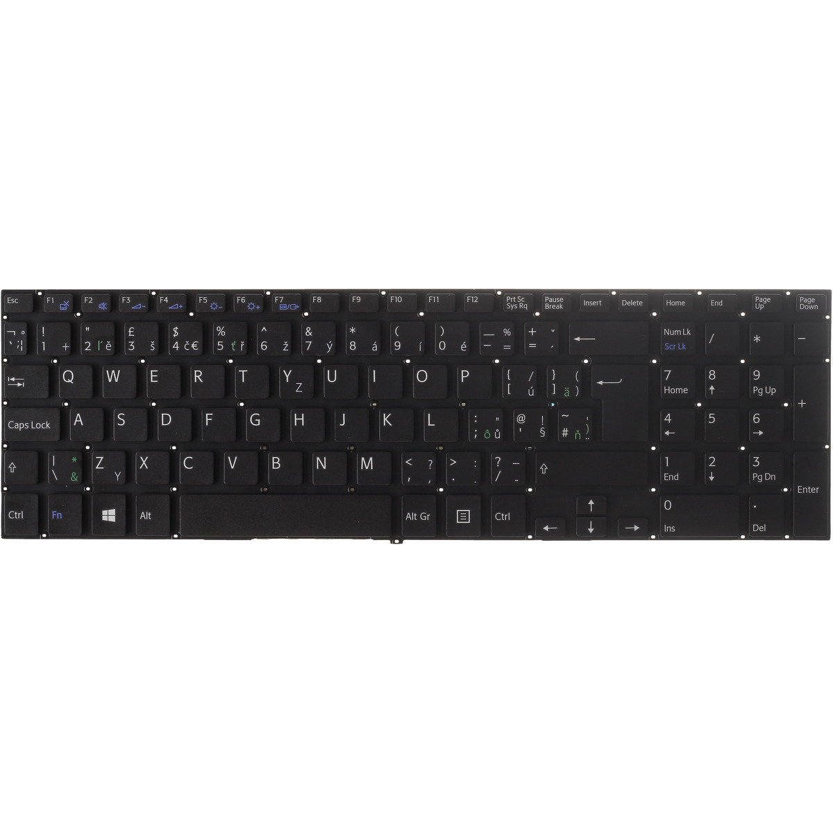 | Beleuchtung: teilweise ( die diakritischen Buchstaben leuchten nicht) |